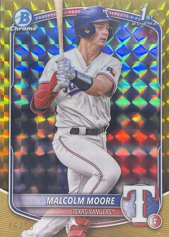 2025 Bowman Chrome Malcolm Moore 1st Prospect Gold Geometric /50 Rangers