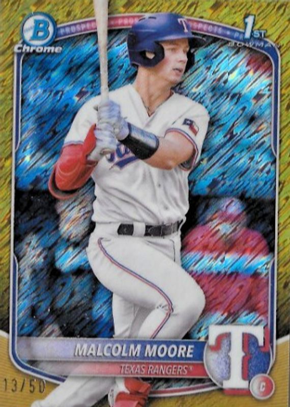 2025 Bowman Chrome Malcolm Moore 1st Prospect Gold Shimmer /50 Rangers