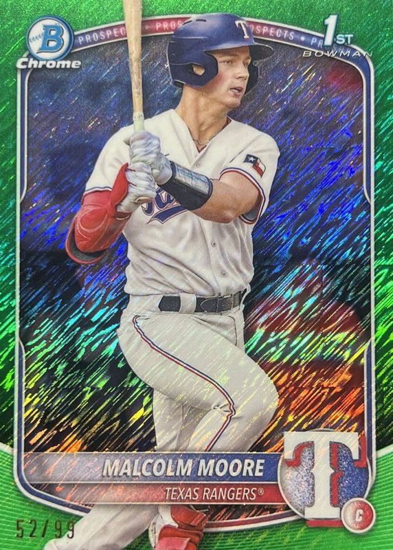 🔥2025 Bowman Malcolm Moore 1st Chrome Green Shimmer /99 (RC)🔥Texas Rangers