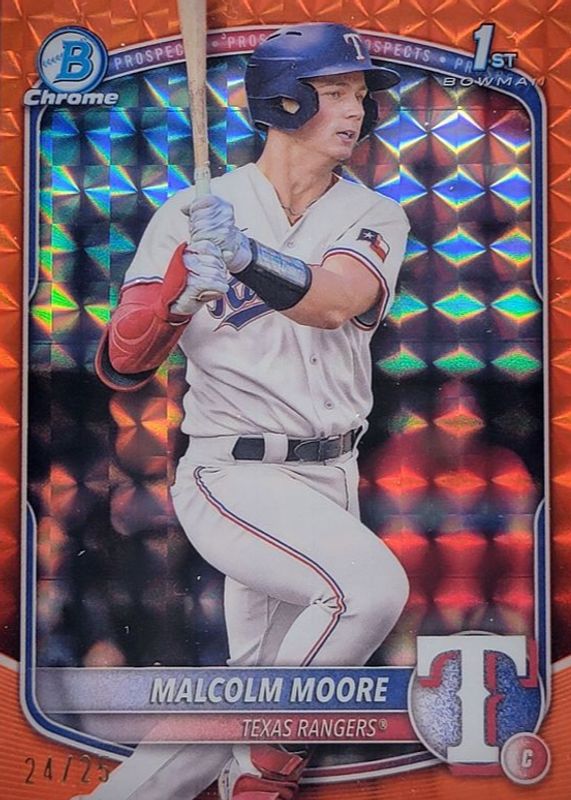 Malcolm Moore 2025 Bowman #BCP-129 Chrome Prospects - Orange Geometric Refractor /25 (1st) RAW Price Guide