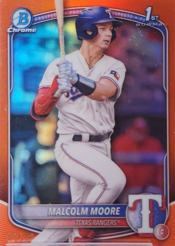 Malcolm Moore 2025 Bowman #BCP-129 Chrome Prospects - Orange Refractor /25 (1st) RAW Price Guide