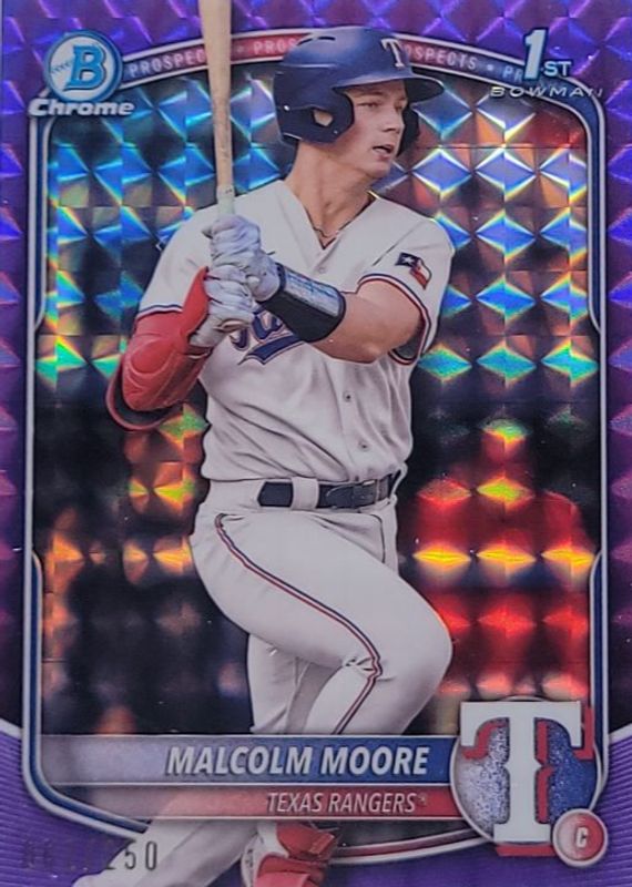 2025 Bowman Chrome MALCOLM MOORE Rangers 1st Purple Geometric Refractor /250