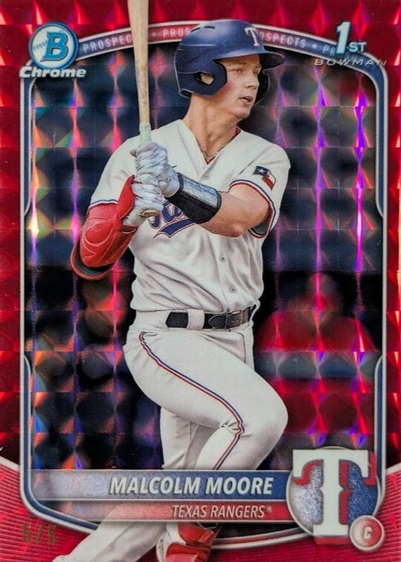 Malcolm Moore 2025 Bowman #BCP-129 Chrome Prospects - Red Geometric Refractor /5 (1st) RAW Price Guide