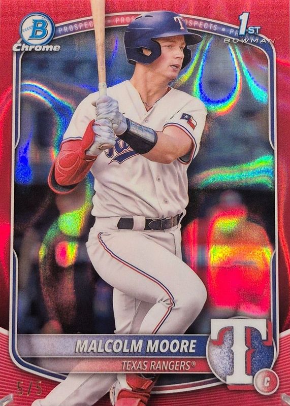 Malcolm Moore 2025 Bowman #BCP-129 Chrome Prospects - Red Lava Refractor /5 (1st) RAW Price Guide