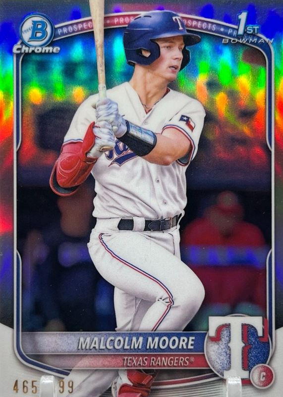 MALCOLM MOORE 2025 Bowman Chrome 1st REFRACTOR PROSPECT /499 Rangers BCP-129