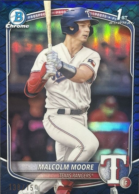 2025 Bowman MALCOLM MOORE 1st Chrome Reptilian Blue Refractor #/150 Rangers