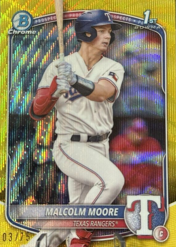 2025 Bowman Chrome MALCOLM MOORE #BCP-129 1st Prospect Yellow Wave /75 Rangers