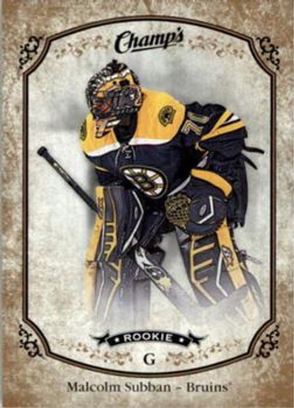 The Malcolm Subban 2015 Upper Deck Champ's #256 Gold Rookie card is 1 of 5 Malcolm Subban's card variations in the 2015 Upper Deck Champ's set being tracked by Sports Card Investor, including Base, Gold Variant Back, Silver /25, and Autographs.