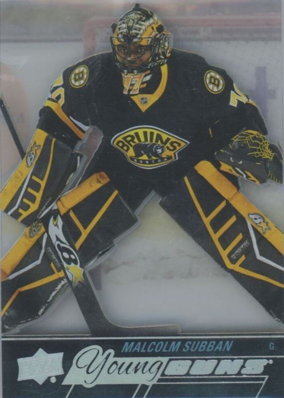 This card is 1 of 7 Malcolm Subban's card variations in the 2015 Upper Deck set being tracked by Sports Card Investor, including Young Guns Base, Young Guns - Jumbo, Young Guns - Foil, Young Guns - UD Exclusives /100, and Young Guns - UD Midnight /25.