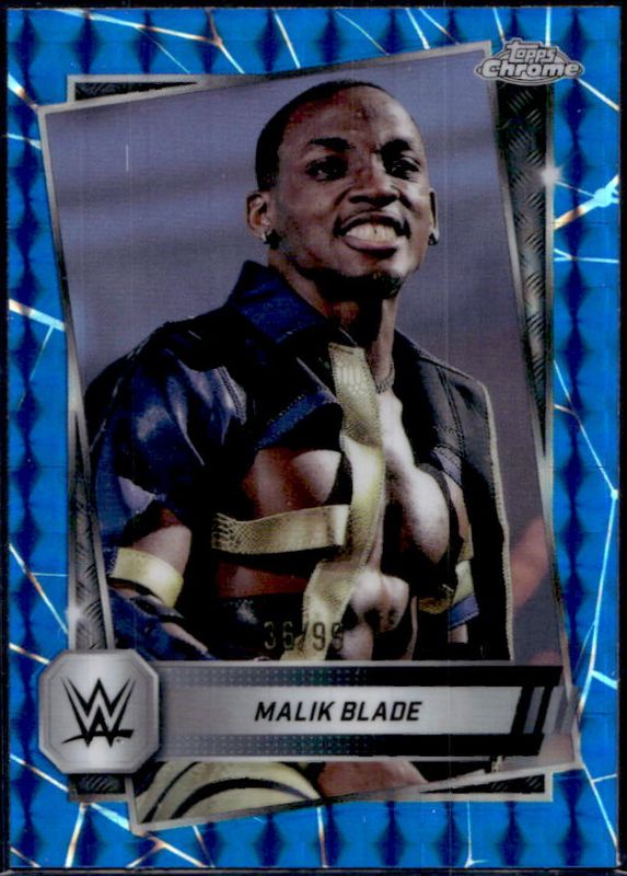The Malik Blade 2025 Topps Chrome WWE #167 Blue Geometric Refractor /99 card is 1 of 36 Malik Blade's card variations in the 2025 Topps Chrome WWE set being tracked by Sports Card Investor, including Base, Black & Gold Refractor, Geometric Refractor, Neon Green & Black Refractor, and Pink Shimmer Refractor.
