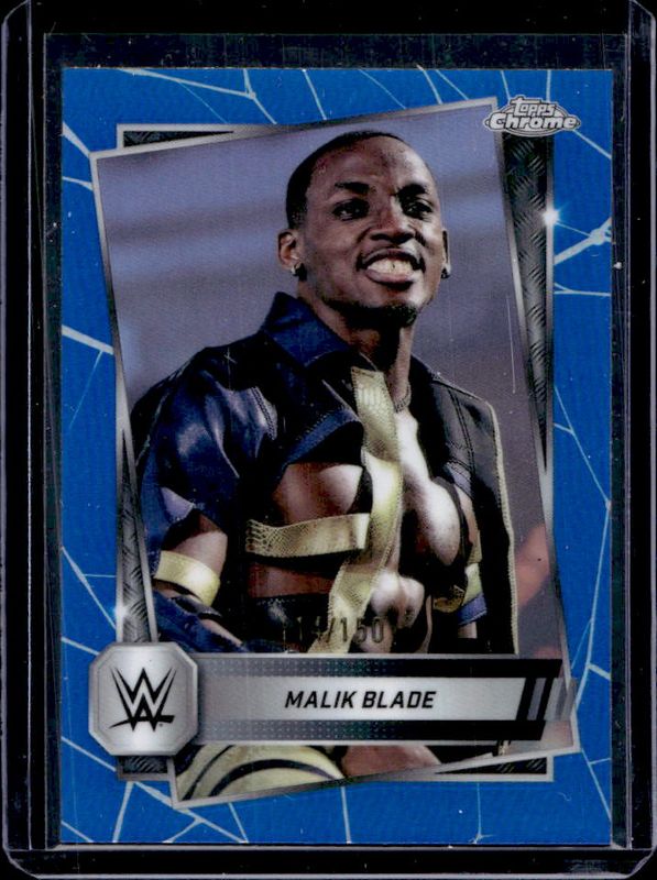 The Malik Blade 2025 Topps Chrome WWE #167 Blue Refractor /150 card is 1 of 36 Malik Blade's card variations in the 2025 Topps Chrome WWE set being tracked by Sports Card Investor, including Base, Black & Gold Refractor, Geometric Refractor, Neon Green & Black Refractor, and Pink Shimmer Refractor.