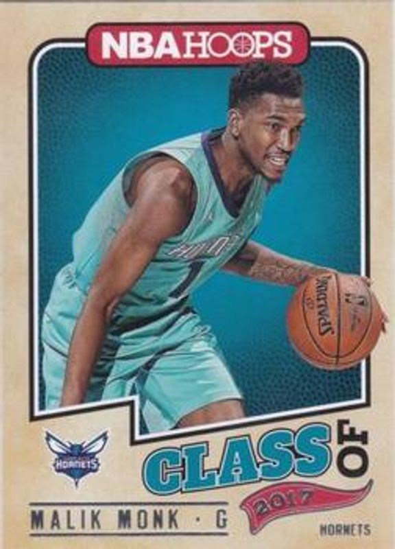 The Malik Monk 2017 Hoops #11 Class of 2017 Rookie card is 1 of 28 Malik Monk's card variations in the 2017 Hoops set being tracked by Sports Card Investor, including Base, Premium Factory Set /199, Blue, Faces of the Future, and Great SIGnificance.