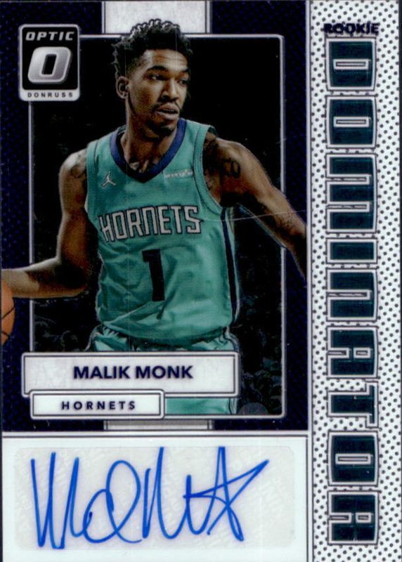 The Malik Monk 2017 Optic #RD-MMN Rookie Dominator Signatures /49 card in Raw condition has not changed in price in the last 30 days and was last sold for $18.00 .