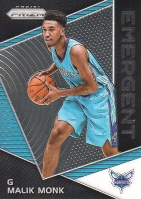 The Malik Monk 2017 Prizm #EM-MAL Emergent Rookie card is 1 of 54 Malik Monk's card variations in the 2017 Prizm set being tracked by Sports Card Investor, including Base, Fast Break, Green, Hyper, and Red White Blue.