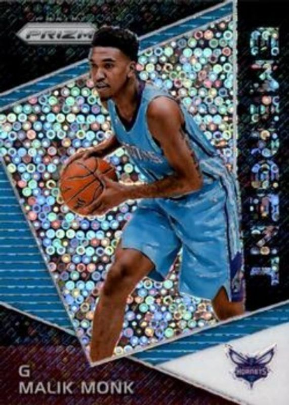 The Malik Monk 2017 Prizm #EM-MAL Emergent - Fast Break Rookie card is 1 of 54 Malik Monk's card variations in the 2017 Prizm set being tracked by Sports Card Investor, including Base, Fast Break, Green, Hyper, and Red White Blue.