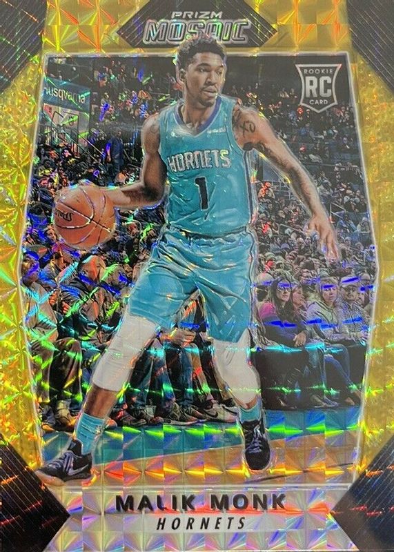 The Malik Monk 2017 Prizm Mosaic #36 Gold /10 Rookie card in Raw condition has not changed in price in the last 30 days and was last sold for $190.50 .