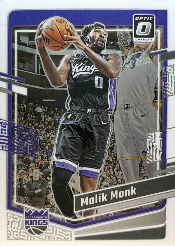 The Malik Monk 2023 Optic #96 Base card is 1 of 58 Malik Monk's card variations in the 2023 Optic set being tracked by Sports Card Investor, including Blue Velocity, Checkerboard, Choice Red & Green, Fast Break, and Green Shock.