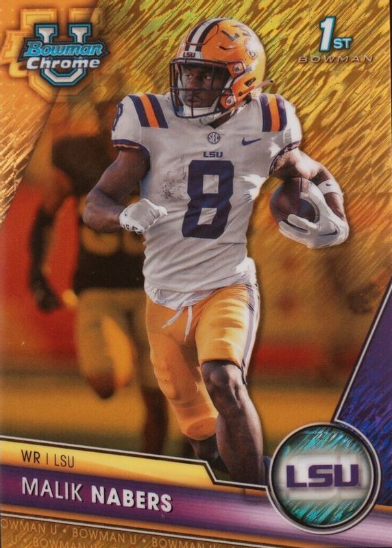 Malik Nabers #74 2023 Bowman Chrome Univ Gold Shimmer Refractor 07/50 LSU AT1