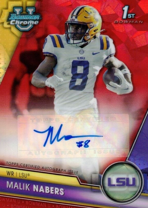 2023 Bowman Chrome U Malik Nabers 1st Red Sapphire Refractor Auto /5 LSU Tigers