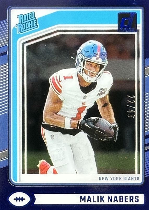 The Malik Nabers 2024 Clearly Donruss #55 Blue /49 Rookie card in Raw condition has not changed in price in the last 30 days and was last sold for $25.00 .