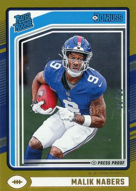 2024 Donruss Malik Nabers Press Proof Gold Rated Rookie #/50 Giants