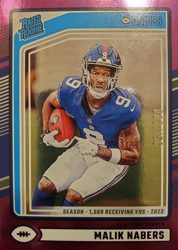 2024 Donruss MALIK NABERS /156 🔥 Purple Rated Rookie Season Stat Line #383 RC