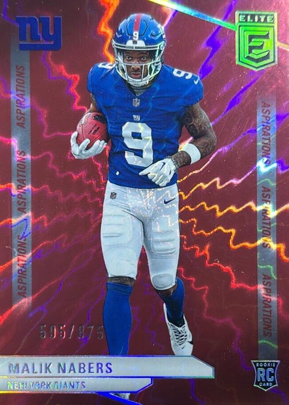 The Malik Nabers 2024 Elite #196 Aspirations Shimmer /875 Rookie card in Raw condition has not changed in price in the last 30 days and was last sold for $6.99 .
