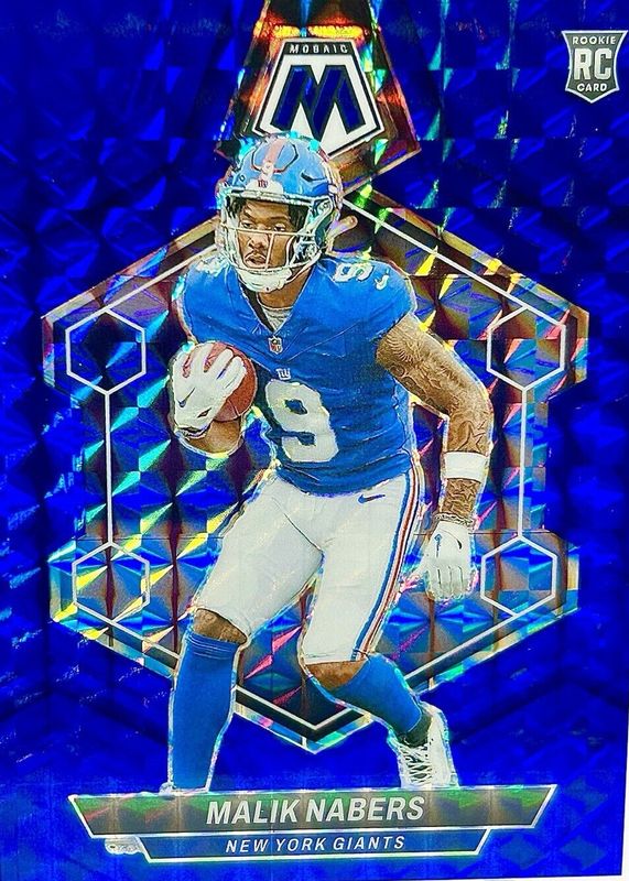 The Malik Nabers 2024 Mosaic #306 Blue /99 Rookie card in Raw condition has not changed in price in the last 30 days and was last sold for $44.95 .