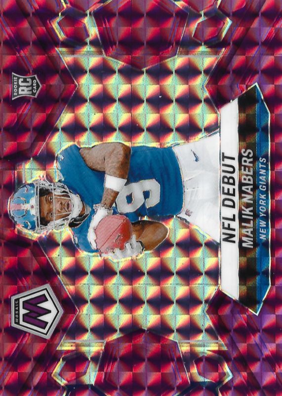 The Malik Nabers 2024 Mosaic #284 NFL Debut - Purple /49 Rookie card in Raw condition has not changed in price in the last 30 days and was last sold for $41.00 .