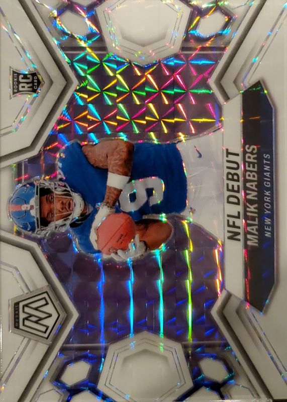 The Malik Nabers 2024 Mosaic #284 NFL Debut - White /25 Rookie card in Raw condition has not changed in price in the last 30 days and was last sold for $119.99 .