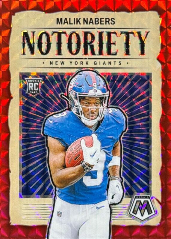 MALIK NABERS 2024 MOSAIC ROOKIE NOTORIETY RED PRIZM GIANTS RC Q5113
