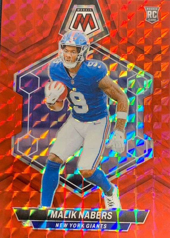 The Malik Nabers 2024 Mosaic #306 Red Rookie card in Raw condition has moved up $2.49 (+45.3%) in the last 30 days and was last sold for $7.99 .