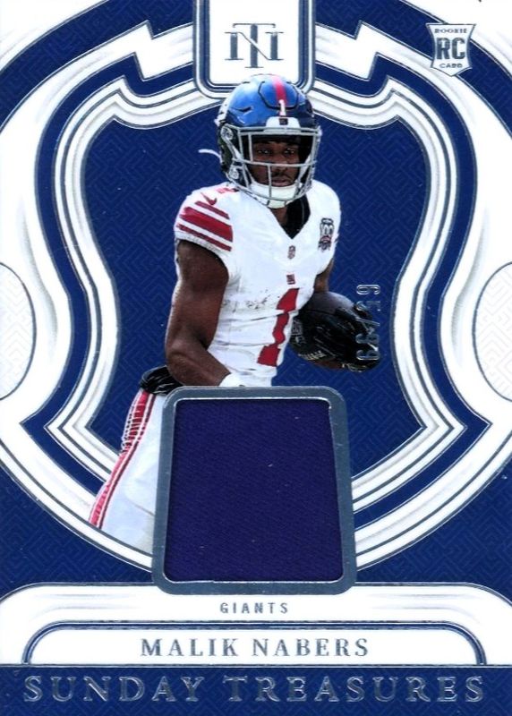 The Malik Nabers 2024 National Treasures #ST-MNS Sunday Treasures /99 Rookie card in Raw condition has not changed in price in the last 30 days and was last sold for $31.50 .