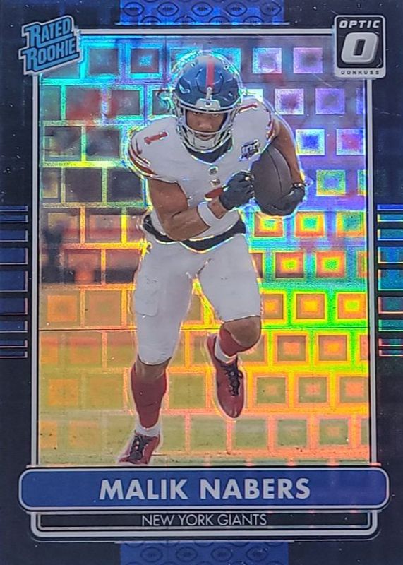 The Malik Nabers 2024 Optic #5 2014 Retro Series - Black Pandora /25 Rookie card in Raw condition has moved down -$63.00 (-28.6%) in the last 30 days and was last sold for $157.50 .