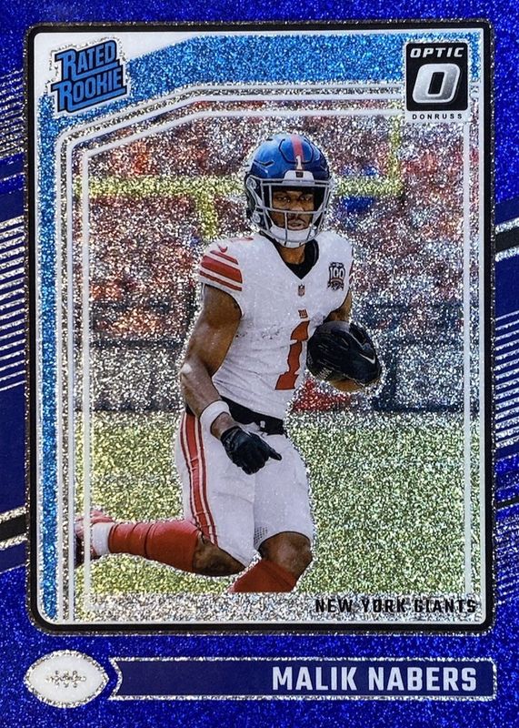 The Malik Nabers 2024 Optic #271 Blue Glitter /(SSP) Rookie card in Raw condition has not changed in price in the last 30 days and was last sold for $45.00 .