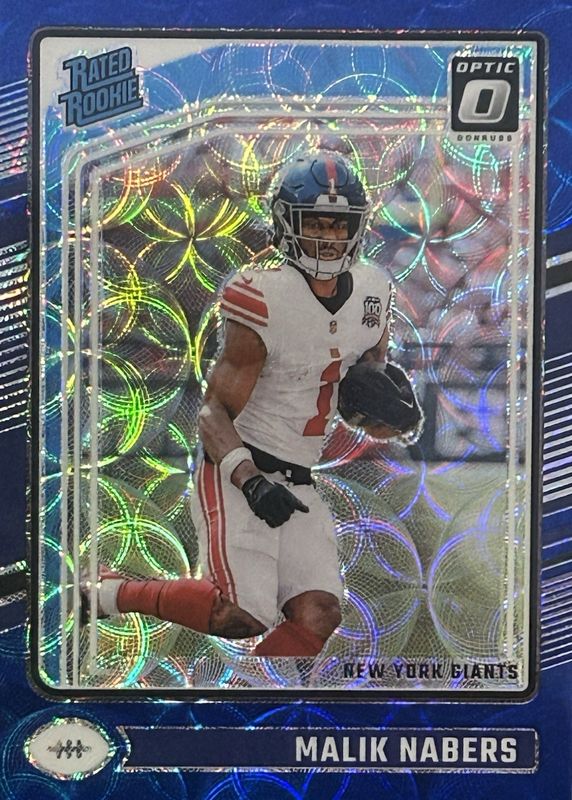 The Malik Nabers 2024 Optic #271 Blue Scope Rookie card in Raw condition has moved down -$7.50 (-60.0%) in the last 30 days and was last sold for $5.00 .