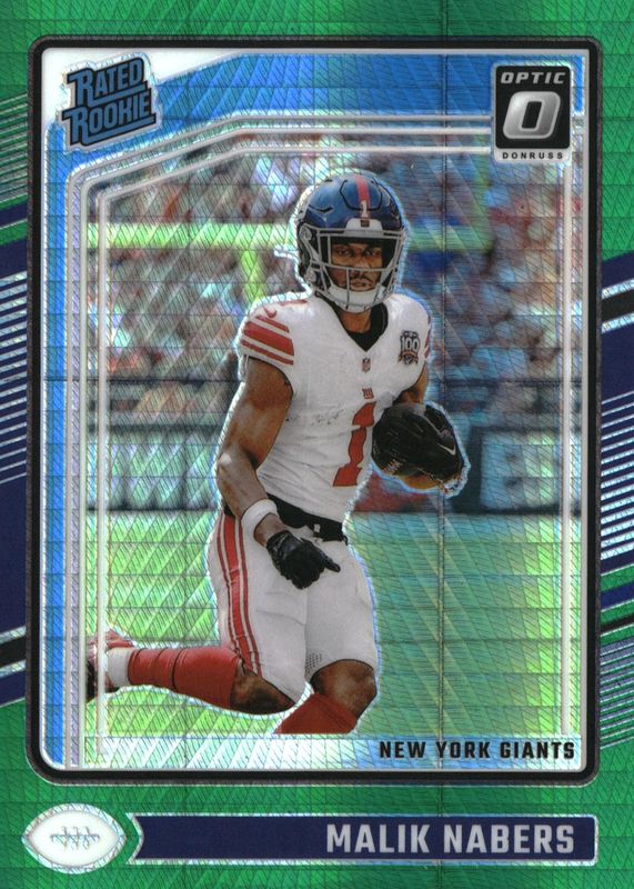 The Malik Nabers 2024 Optic #271 Green Hyper Rookie card in Raw condition has moved up $0.74 (+17.4%) in the last 30 days and was last sold for $4.99 .