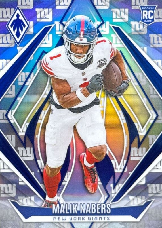 The Malik Nabers 2024 Phoenix #221 NFL Shield /150 Rookie card in Raw condition has not changed in price in the last 30 days and was last sold for $12.50 .
