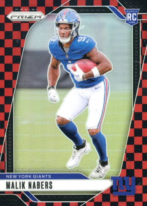 The Malik Nabers 2024 Prizm #370 Black & Red Checker /(SSP) Rookie card in Raw condition has not changed in price in the last 30 days and was last sold for $78.77 .