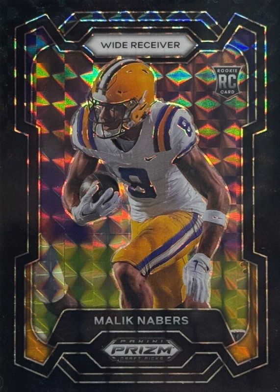 This card is 1 of 83 Malik Nabers' card variations in the 2024 Prizm Draft Picks set being tracked by Sports Card Investor, including Base, Green, Purple Wave, Red Ice, and Ruby Wave.