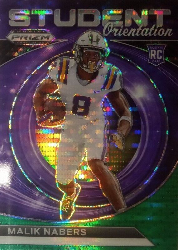 The Malik Nabers 2024 Prizm Draft Picks #SO-MN Student Orientation - Green Pulsar /25 Rookie card in Raw condition has not changed in price in the last 30 days and was last sold for $1.67 .