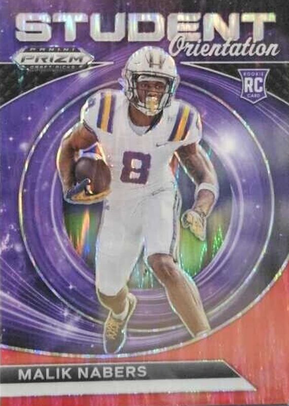The Malik Nabers 2024 Prizm Draft Picks #SO-MN Student Orientation - Red Flash /49 Rookie card in Raw condition has not changed in price in the last 30 days and was last sold for $5.50 .
