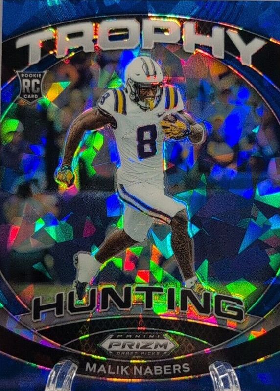 The Malik Nabers 2024 Prizm Draft Picks #TH-MNS Trophy Hunting - Blue Ice /99 Rookie card in Raw condition has not changed in price in the last 30 days and was last sold for $14.07 .