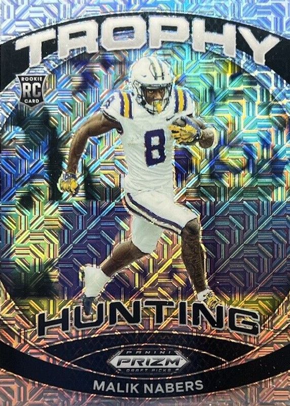 The Malik Nabers 2024 Prizm Draft Picks #TH-MNS Trophy Hunting - Mojo /25 Rookie card in Raw condition has not changed in price in the last 30 days and was last sold for $49.99 .