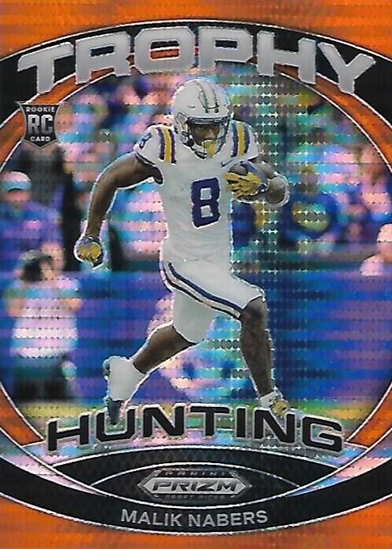 Best Prices Available For Sale of Malik Nabers 2024 Prizm Draft Picks #TH-MNS Trophy Hunting - Orange Pulsar /49