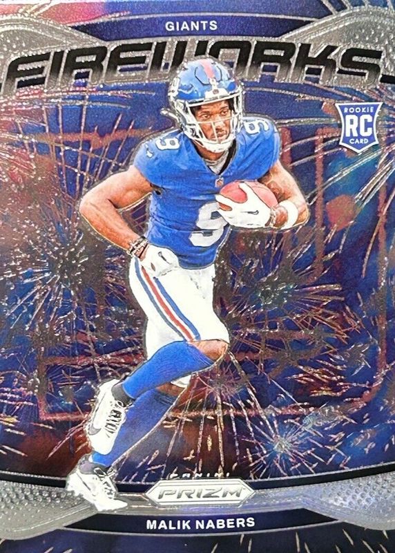 The Malik Nabers 2024 Prizm #21 Fireworks Rookie card in Raw condition has moved up $0.25 (+20.0%) in the last 30 days and was last sold for $1.50 .