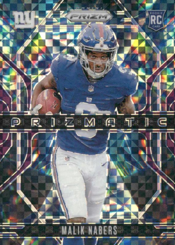 The Malik Nabers 2024 Prizm #13 Prizmatic - Purple Power /49 Rookie card in Raw condition has not changed in price in the last 30 days and was last sold for $29.00 .