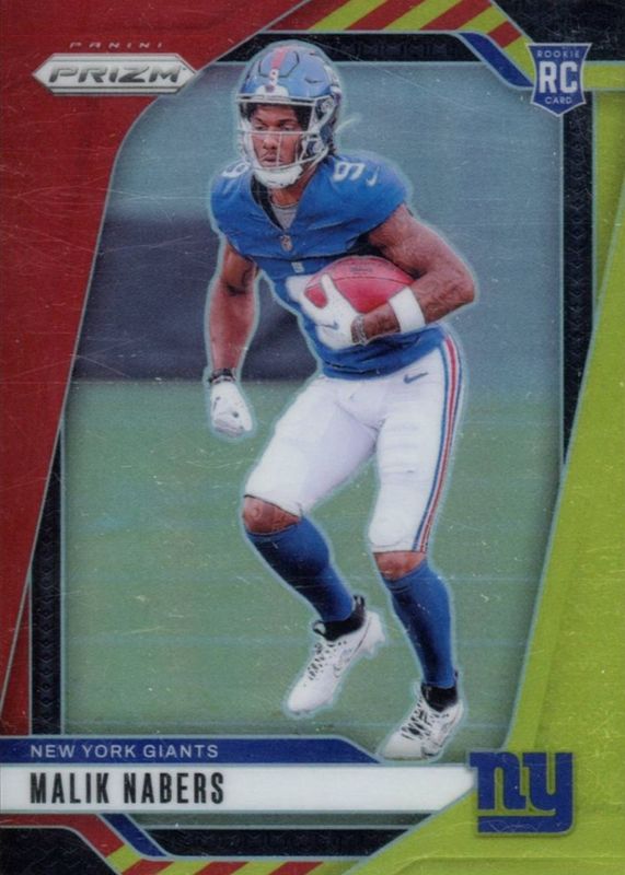 The Malik Nabers 2024 Prizm #370 Red & Yellow /44 Rookie card in Raw condition has not changed in price in the last 30 days and was last sold for $115.49 .