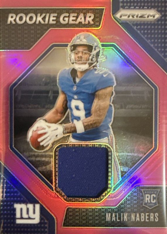 The Malik Nabers 2024 Prizm #RG-MNS Rookie Gear - Pink card in Raw condition has moved up $1.76 (+64.2%) in the last 30 days and was last sold for $4.50 .