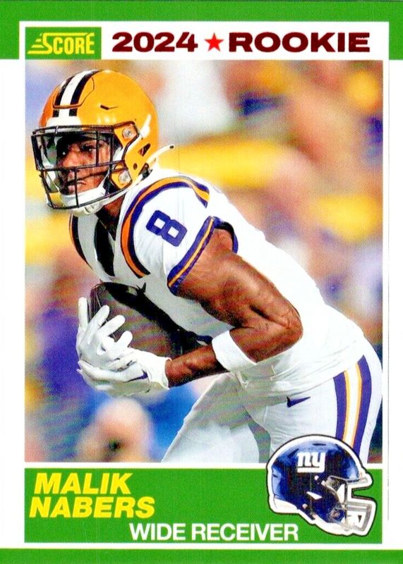 The Malik Nabers 2024 Score #5 35th Anniversary Rookie - Red card in Raw condition has not changed in price in the last 30 days and was last sold for $1.25 .